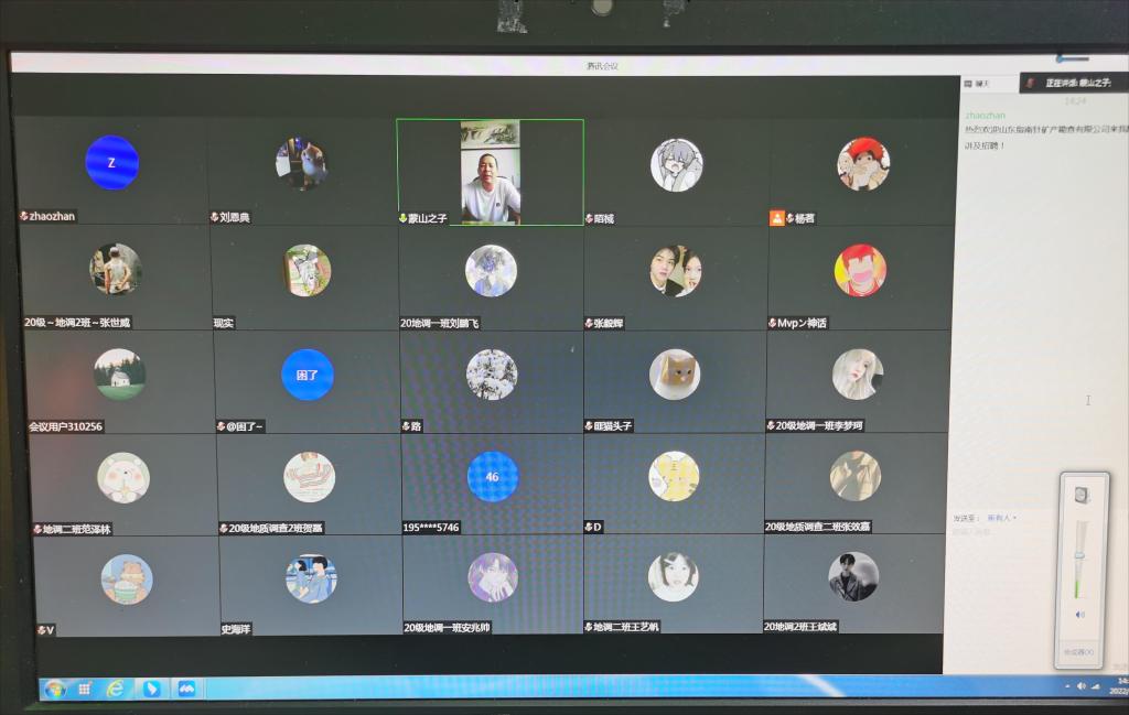为稳步推进我系就业工作高质量开展,帮助员工认清当下就业形势,9月13日至14日,我系分别召开了两场线上招聘会。招聘会由地质矿产勘查系党支部书记赵展主持,我系2020级顶岗实习的全体员工在线参会。