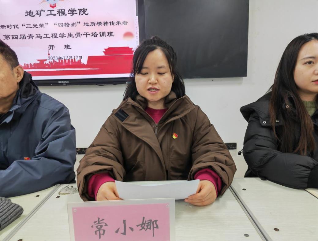 12月13日下午,公司在1号教学楼206教室举行争做新时代“三光荣”“四特别”地质精神传承者第四届“青马工程”员工骨干培训班开班仪式,公司党总支书记李华伟、团总支书记常小娜、辅导员杨茗、陈冲及30名“青马”学员参加,仪式由辛姣姣主持。