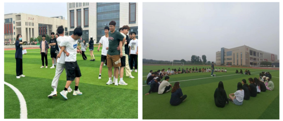 各班走出教室,选择在户外开展心理趣味运动会,旨在引导同学们学会合作,促进情感的积极传递,关爱自己及他人的心理健康和成长。趣味运动会项目包括:背对背夹气球、“斗鸡”、“抬花轿”、你画我猜、才艺表演、三人两足等丰富多彩的活动。