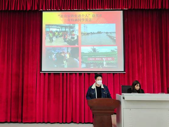 许钰涵作为“社会实践先进个人”代表发言,他认为青年强则中国强,青年员工应当肩负起时代赋予的使命。李婷婷作为三好员工标兵发言,她分享了自己在学习中的经验。