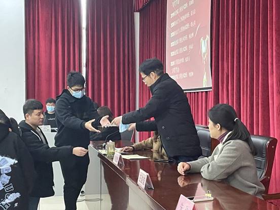 李俊杰书记、辛娇娇老师、朱琳老师为获奖同学颁发荣誉证书,王洁莹老师宣读表彰决定。