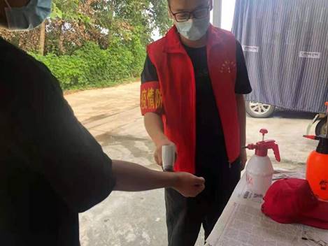 8月3日,地勘系20级工程造价2班薛丁豪同学在南阳市内乡县湍东镇江园村做志愿者,主要负责外来人员测量体温、登记信息、宣传抗疫防护知识等。传递爱心、引导群众、服务群众,为防疫工作贡献自己的一份力量。