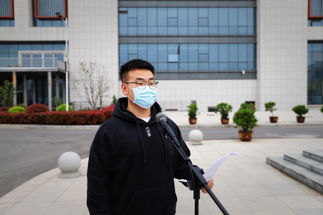 他代表同学们表达了对祖国的热爱,对党的向往,并在演讲中表示,坚持认真学习党史,时刻牢记党的教导,不忘初心,牢记使命。学党史、听党话、跟党走,学好专业课,以优异成绩迎接党的百年华诞。