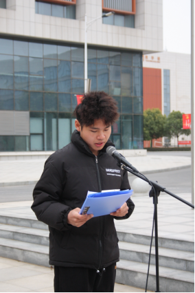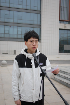升旗仪式结束后,23级水工3班尹鹏祥发言,他代表员工表达了积极响应国家绿色发展号召的决心,他呼吁同学们行动起来,去保护我们的自然环境,把我们的爱心倾注到我们的举手投足之中,留住身边的每一点绿,从点滴小事做起,将环保理念融入生活的方方面面。