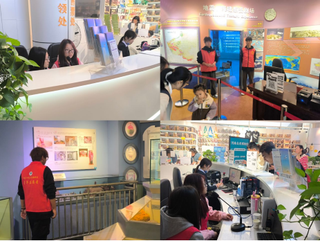 志愿者们经过博物馆工作人员的简单培训后,两人一组,分别在咨询、零售、地震海啸剧场、观影等岗位,耐心解答参观人员问题、协助观影、引导进场等,志愿者们配合默契、现场工作井然有序。经过一上午的志愿服务,同学们开阔了视野,加深了对自然博物馆内藏品的认识,深深感受到了志愿服务的意义。大家纷纷表示,此次志愿者服务不仅锻炼了自己的实践能力,更让自己的专业能力在实践中得到了运用,深刻体会到了专业学习的意义。