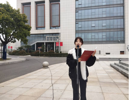 接着,25级员工代表徐思佳作国旗下发言。她将学风拆解为课堂守序、诚信应考等日常细节,又以宿舍用电、防范诈骗为例,强调校园生活安全,呼吁大家认真学习、共建平安校园,用优良学风与安全意识护航成长。