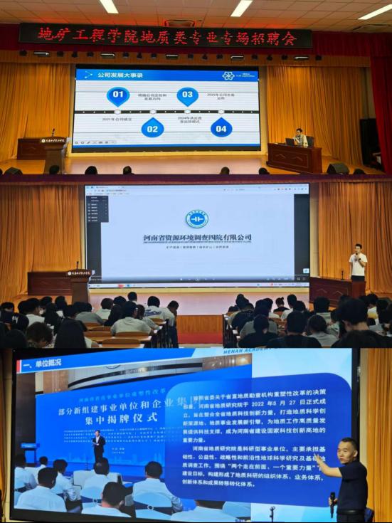 5 月 28 日,公司在合堂二成功举办了地质类专业小型双选会。此次双选会吸引了河南一览众山地质勘查有限公司、豫地科技集团河南省资源环境调查四院有限公司、河南省地质研究院、中铁工程设计咨询集团有限公司郑州设计院等优质企业参会。公司党总支书记李华伟、经理杨国华亲临现场,为员工就业保驾护航,23级地质类专业全体员工踊跃参与。