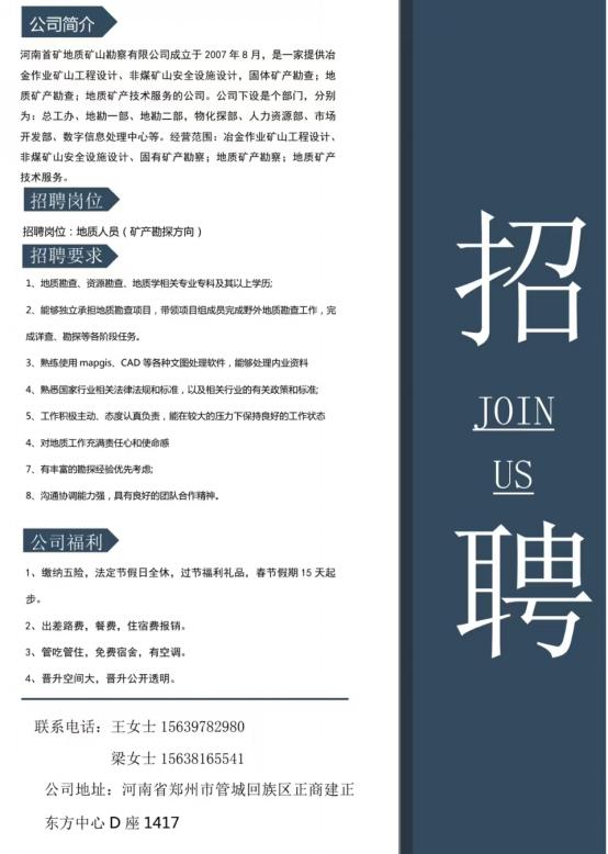 【招聘信息】 河南首矿地质矿山勘察有限公司