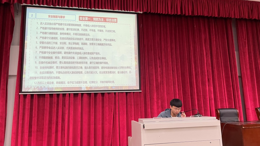 首先,会议由冯颖俊老师为建筑与工程造价班级的同学讲解实习安全注意事项,并由建工班级员工代表宣读《实习生安全告知书》。