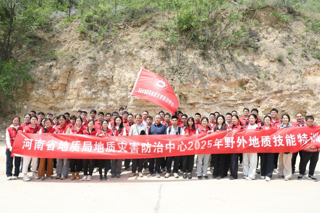 4月18日,河南省地质局地质灾害防治中心委托公司在登封地质实习基地举办2025年野外地质技能特训,旨在进一步提升中心技术人员地质调查水平,促进地质技术传承与创新发展,中心副主任、总工程师王鑫率60余名技术人员参加培训。
