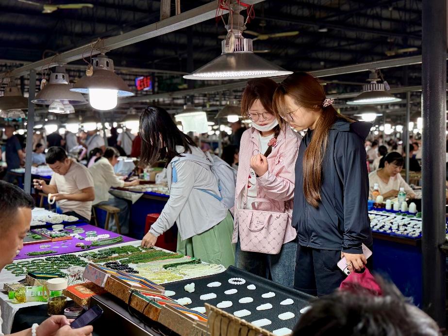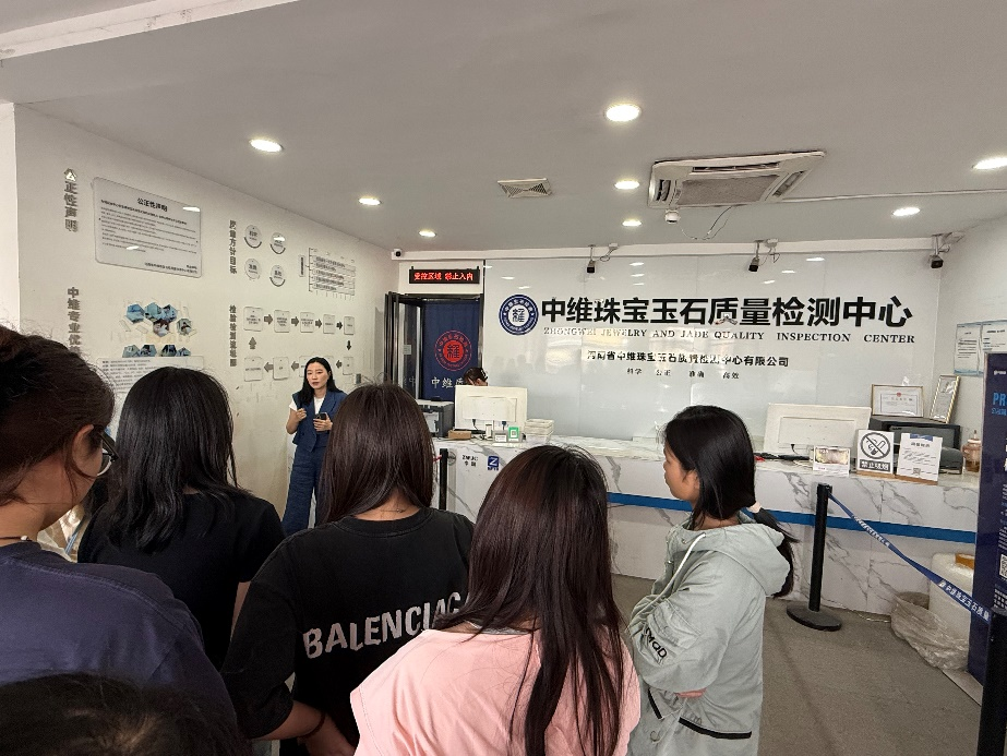 实习期间,同学们深入走访了原料市场、成品市场、直播中心以及质检中心等多个关键领域。通过实地考察与学习,全面了解了玉石行业的发展动态与市场前景。在和田玉、翡翠及其相似玉石的鉴定技能、营销手段、加工工艺及市场行情等方面进行了重点研习与实践,不仅掌握了玉石鉴赏的实用技能,同时在实践中锻炼了团队协作、沟通交流等综合能力。