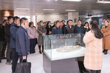 仪式结束后,全体人员移步图书馆楼前合影留念,记录这一重要时刻。随后,在公司教师带领下,与会人员参观了地质陈列馆。馆内丰富的矿物标本、地质模型及历史资料,生动展现了地矿事业的发展脉络,进一步激发了党员及师生服务地矿行业的使命感。