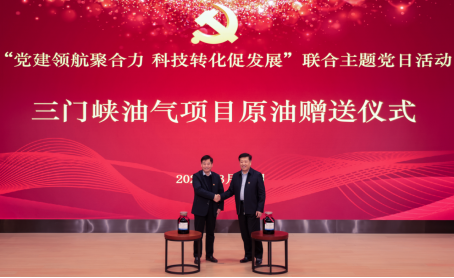 报告结束后,活动进入核心环节。省地质局副局长冯远新向公司党委书记焦洪涛赠送“原油”样品,通过实物交接彰显双方以资源为纽带,进一步深化产教融合。
