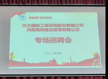 为了更好地拓宽毕业生就业渠道,5月17日,方大国际工程咨询股份有限公司、河南海纳建设管理有限公司专场招聘会在教学楼合堂一举行。会议由辅导员胡晨主持,此次招聘会面向我系21级建筑工程技术、工程造价专业的学...