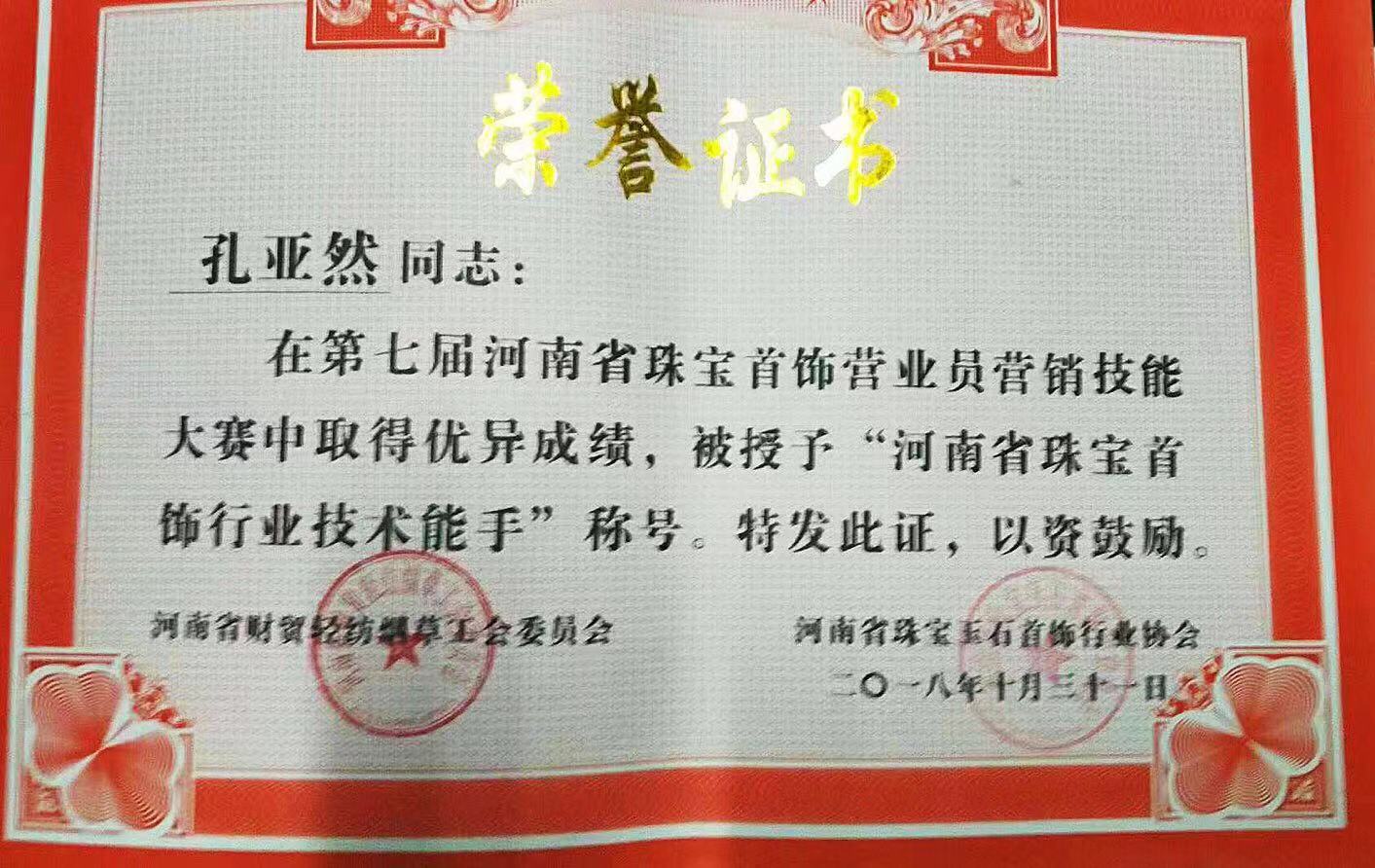 yl9193永利珠宝专业员工参加第七届河南省珠宝首饰销售技能大赛载誉归来